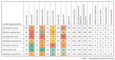 - Is there a disparity in individual student’s scores across the four types of ability? For example, a very low verbal score in relation to the other scores may indicate a specific learning difficulty in a native English speaker.